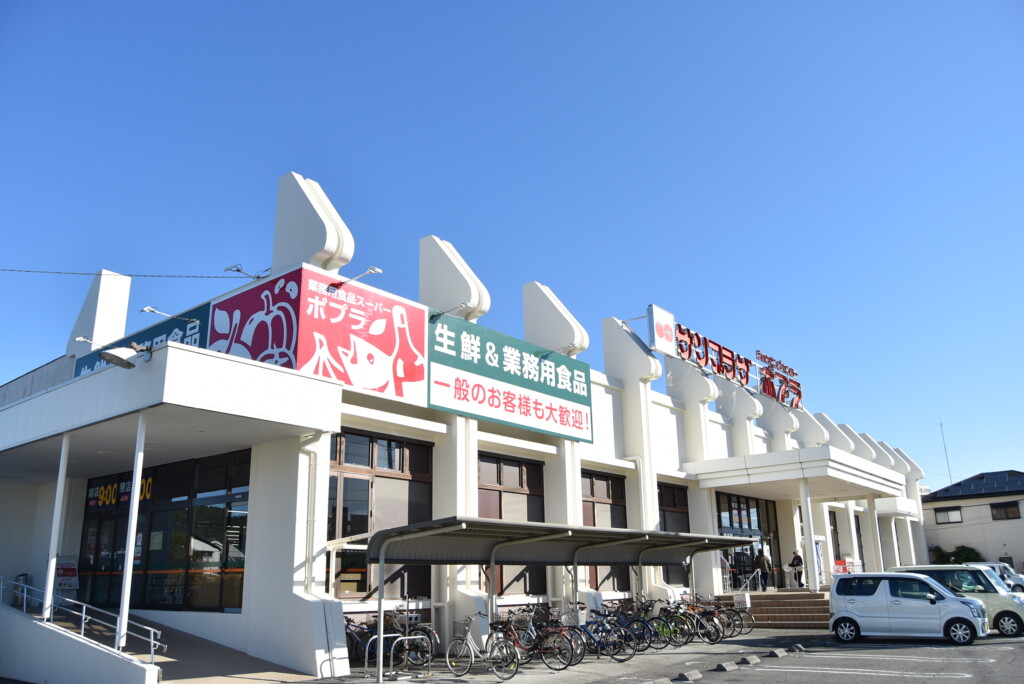 同じ高岡町内には、業務用の特大商品や食料品、日用品など豊富な商品をリーズナブルに買えると人気の系列店「ポプラ」もあります。