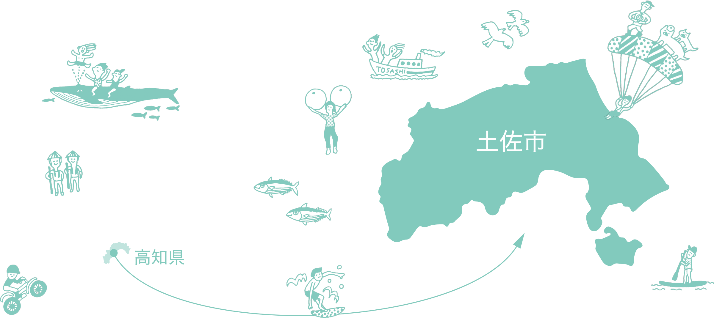 高知市の西隣に位置する土佐市は大きな龍が口を開いているような形をしています。